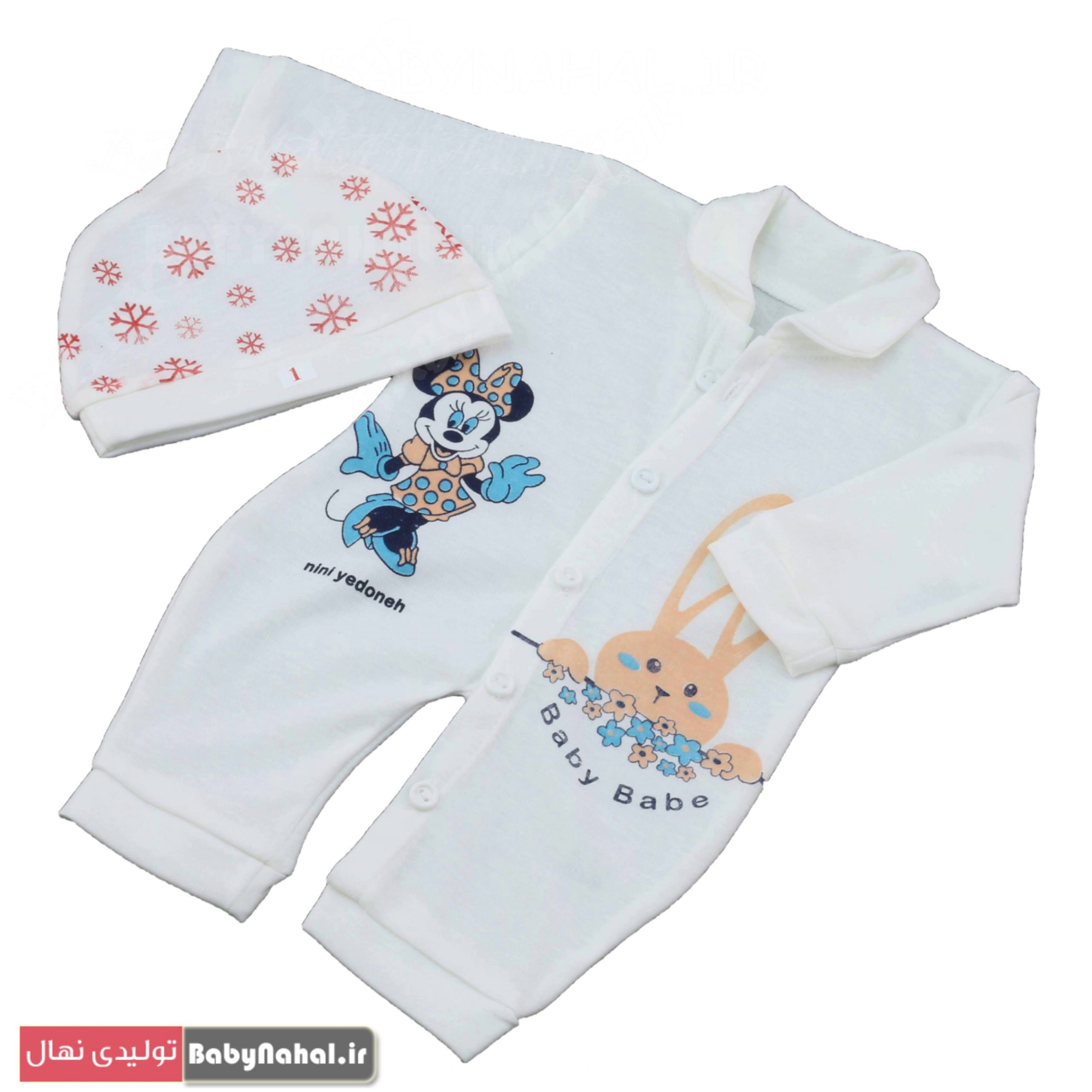 سرهمی با کلاه نخی چاپی طرح خرگوش و میکی کد 7981