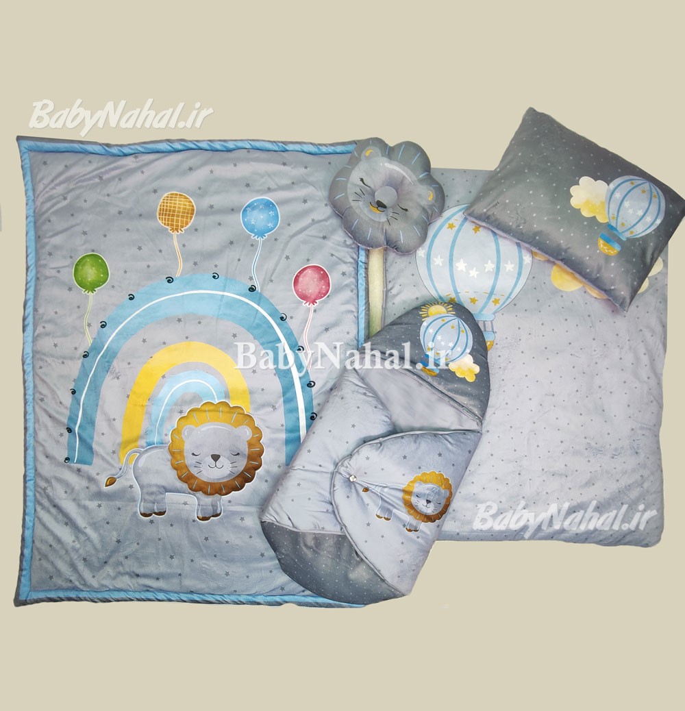 سرويس خواب 5 تيكه مخمل چاپي شير و بالن كد 13584