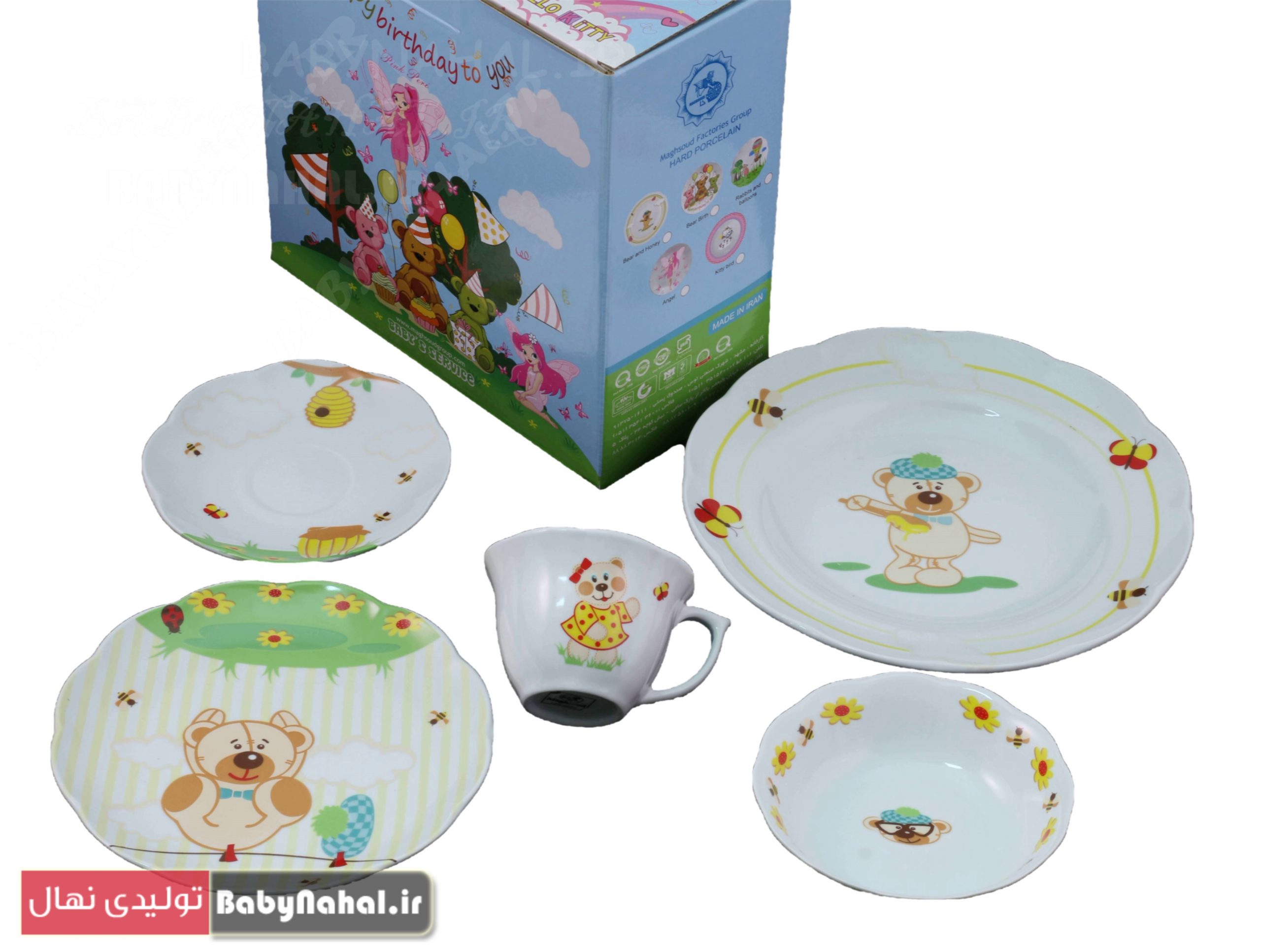 سرویس چینی 5 پارچه نیلوفری مقصود طرح خرس و عسل کد 7118