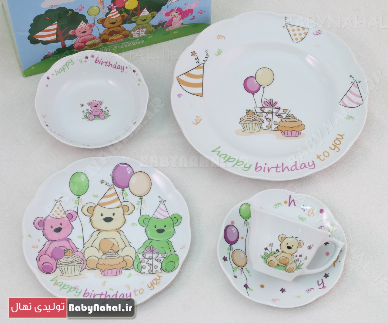 سرویس چینی 5 پارچه نیلوفری مقصود طرح خرس تولد کد 7111