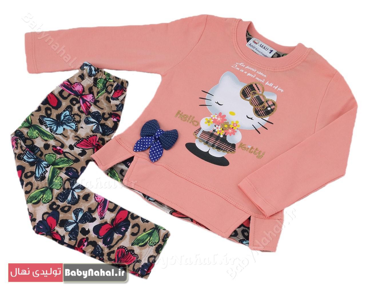 11194 بلوز و شلوار چاپ کیتی پروانه ای (AK) سایز3و4 کد7689