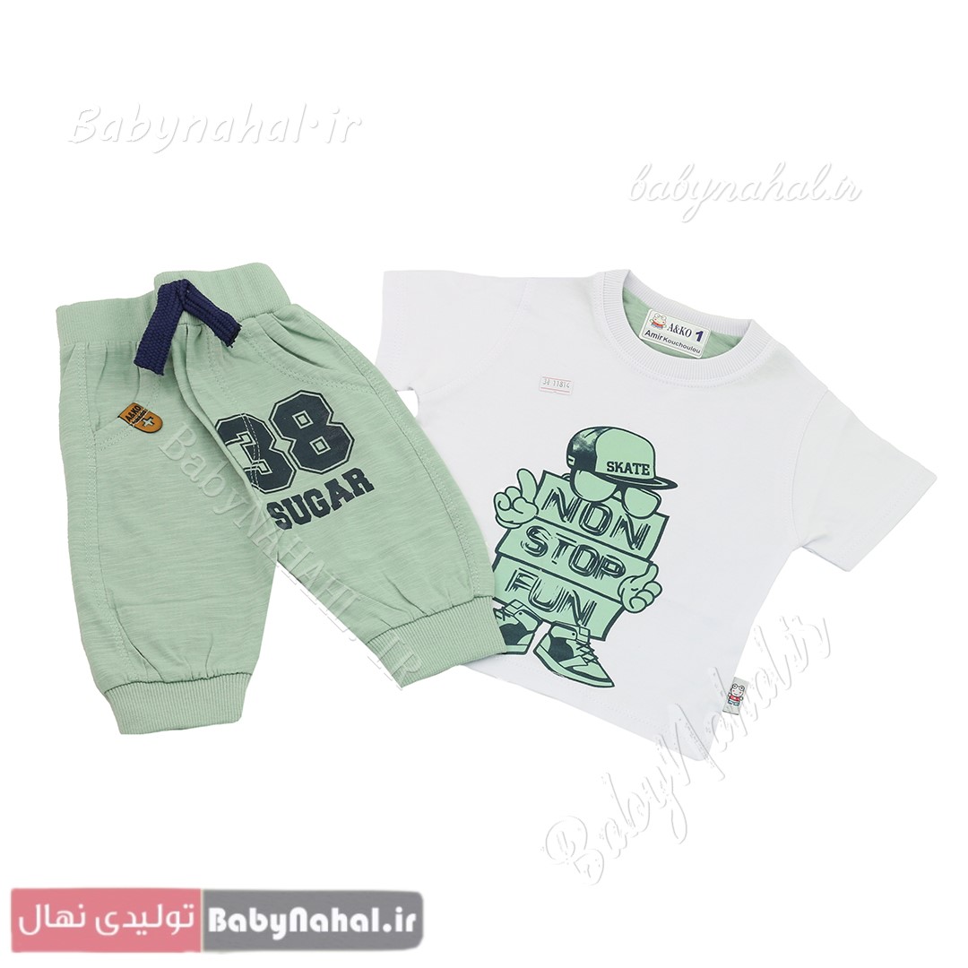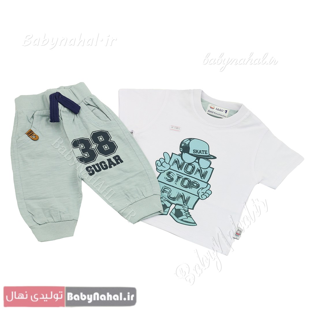 11815 تیشرت و شلوارک چاپ پسرک سایز 3 و 4 (AK) کد 9518