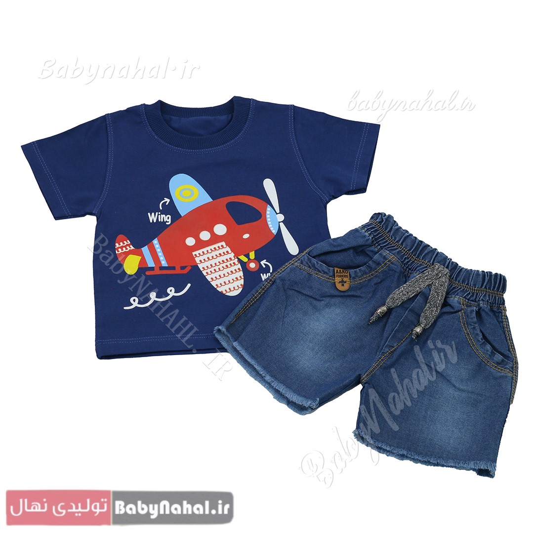 11820 تیشرت رنگی هواپیما وشورت لی سایز 1 و 2 (AK) کد 9523