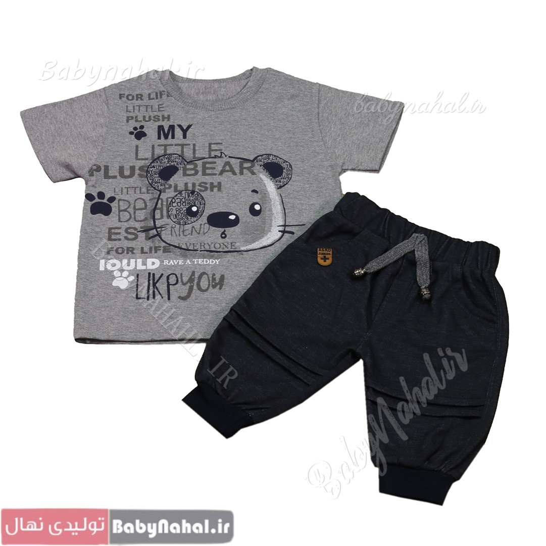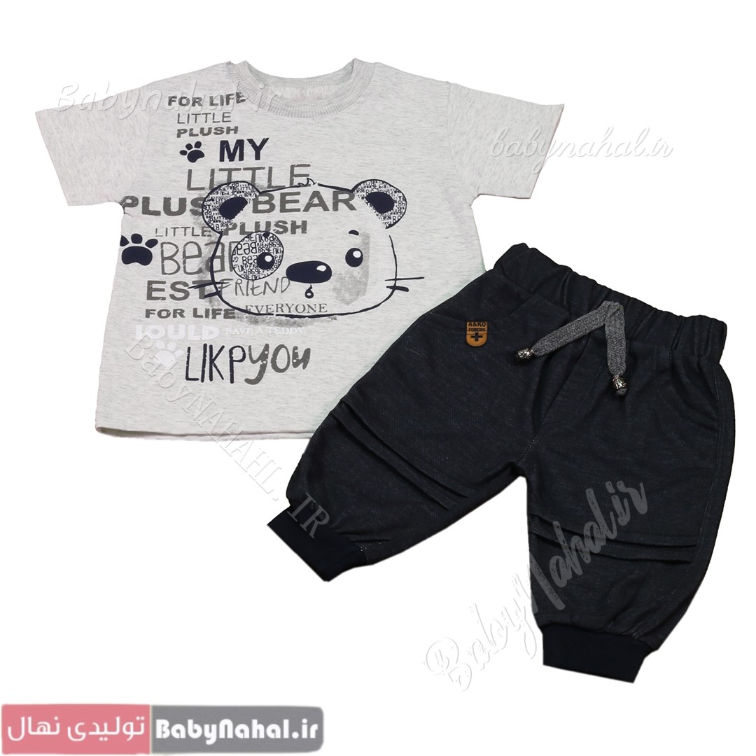 11892 بلوز و شلوارک ملانژ چاپی کله خرس سایز 3,4 (AK) کد 9843