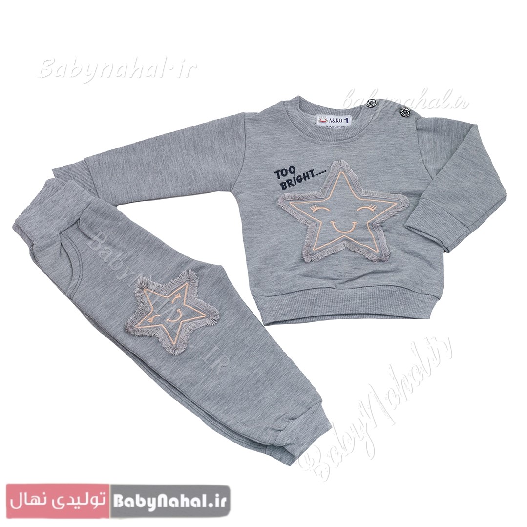 12074 بلوز وشلوار ملانژ گلدوزی ستاره سایز 1,2(AK) کد 9196