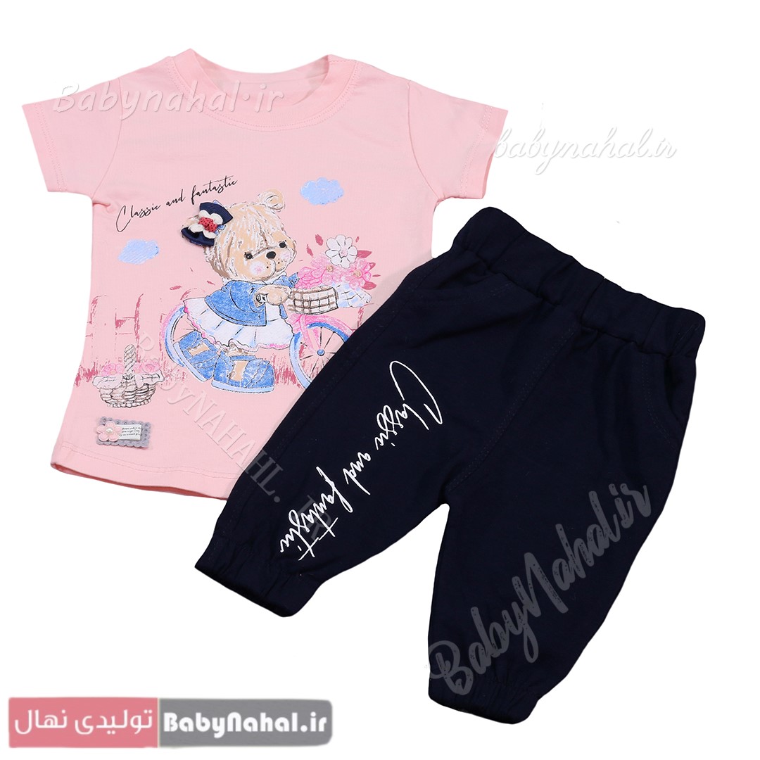 12133 بلوز و شلوارک چاپی خرس و دوچرخه سایز 3,4 کد 9671