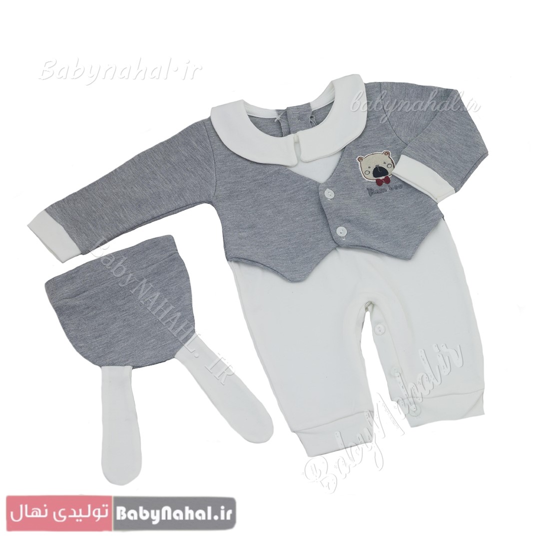 132سرهمی پنبه با کلاه گلدوزی خرس سایز 1 و 2 کد 9332