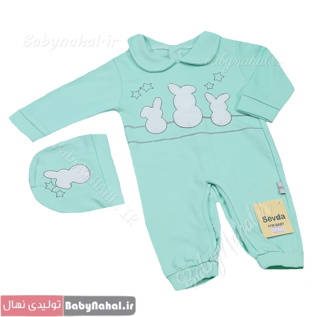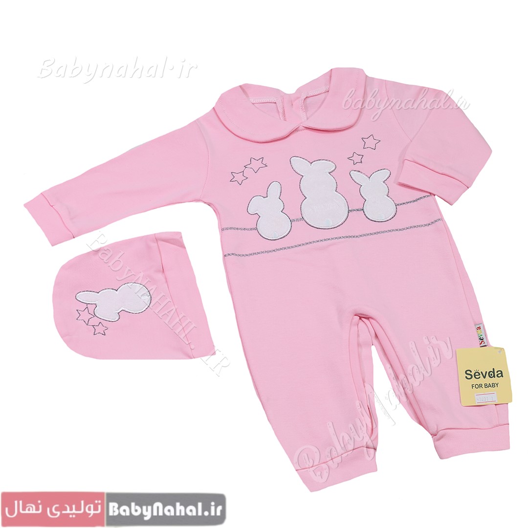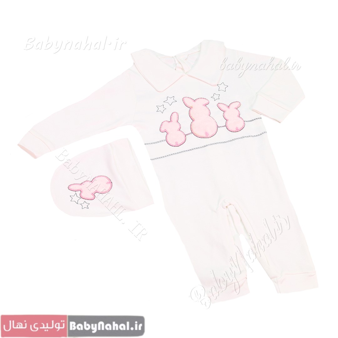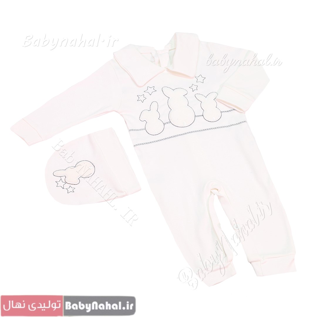 1401 سرهمی پنبه با کلاه گلدوزی خرگوش و ستاره سایز 2و1 (AS) کد 5179
