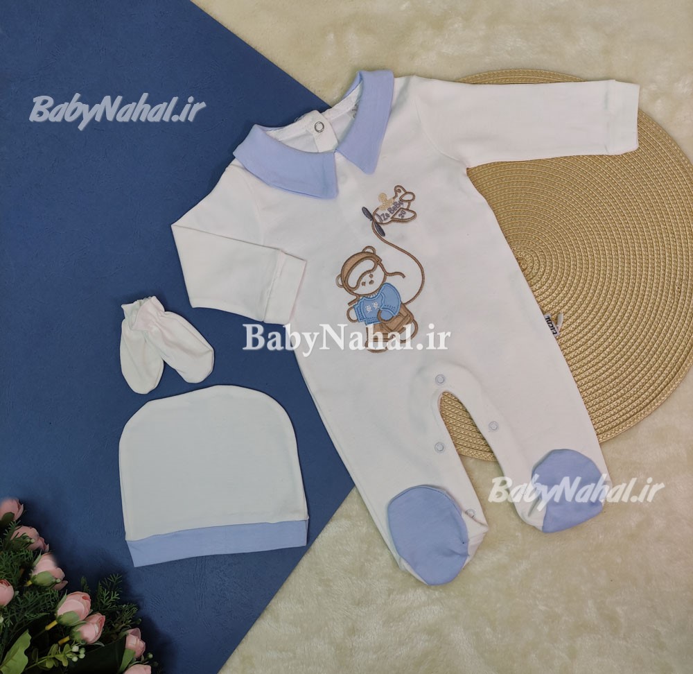 130سرهمي مخمل با كلاه گلدوزي خرس كلاهدار كد 6861