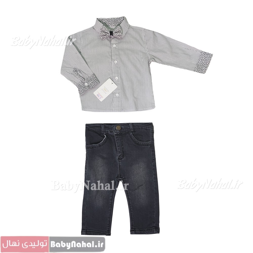 5240بلوز و شلوار لي پاپيون دار چاپي راه راه سايز 1/3 كد 12716