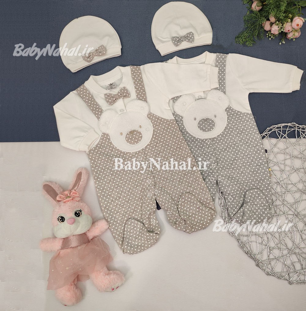 78سرهمي پنبه جورابدار با كلاه خالدار خرس كد 11352
