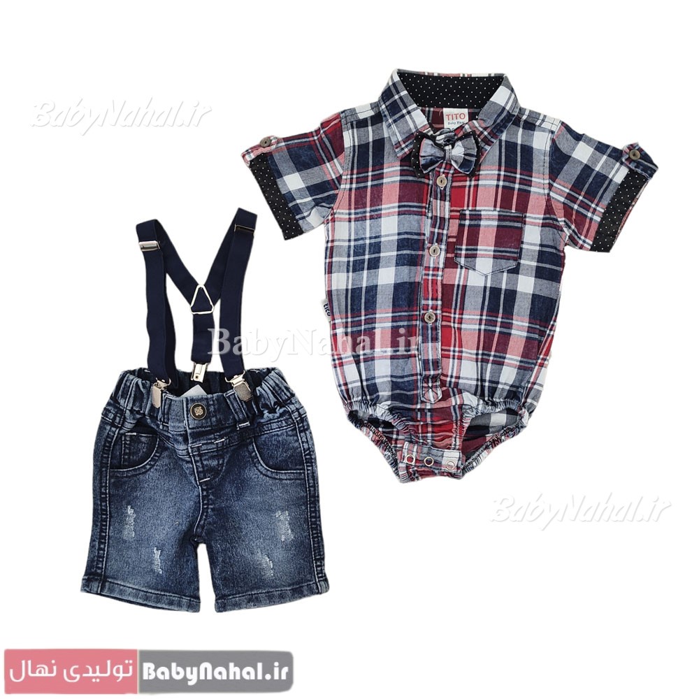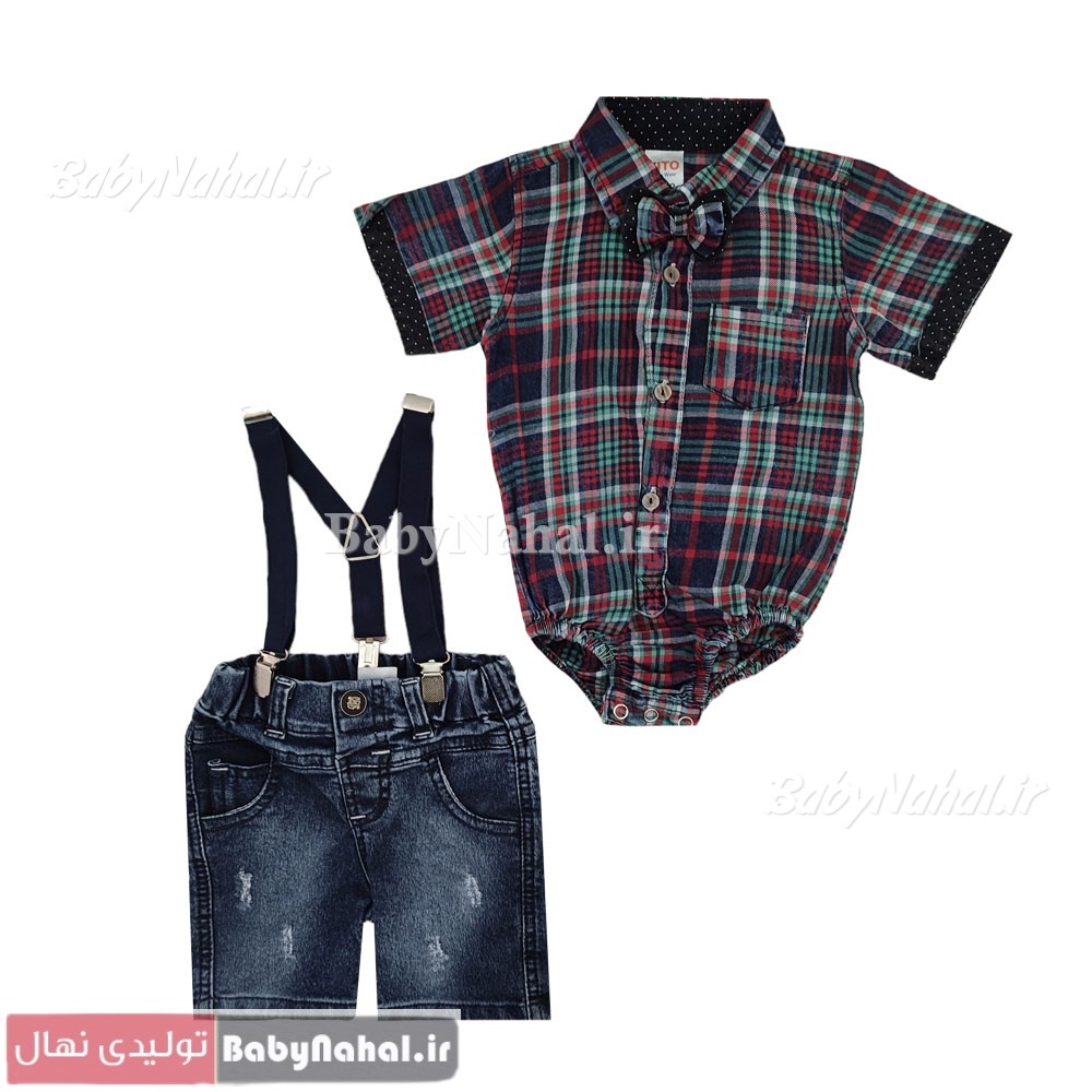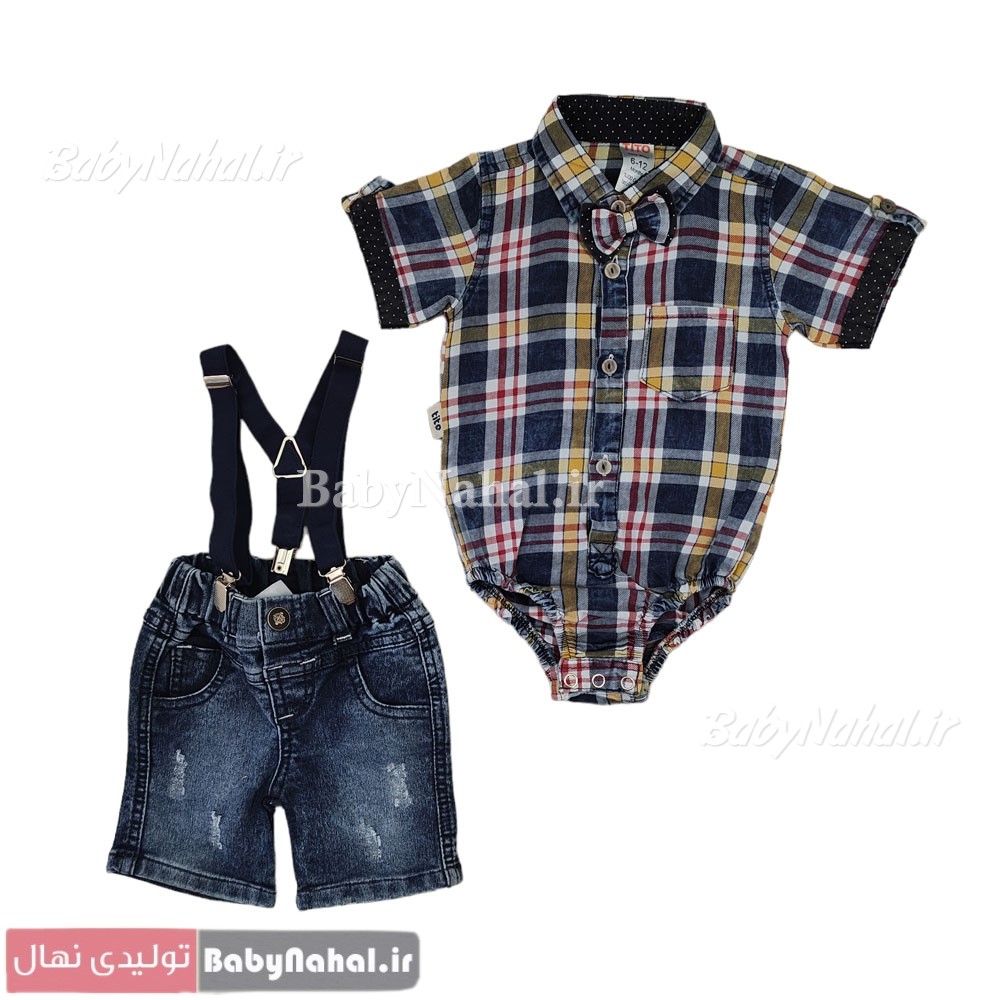 572سه تيكه بادي و شلوار لي چهار خونه سايز 1-3 (CT) كد 10851