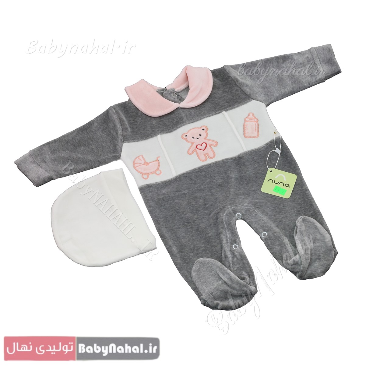 970 سرهمی مخمل جورابدار با کلاه گلدوزی یقه ب.ب سایز 1,2 (AZ) کد 6661