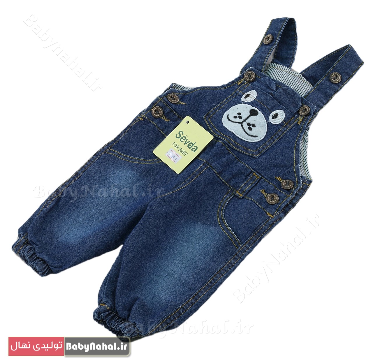 9889 شلوار لی پیش بندی جیب دار گلدوزی خرس سایز 1-4 (AS) کد 7961